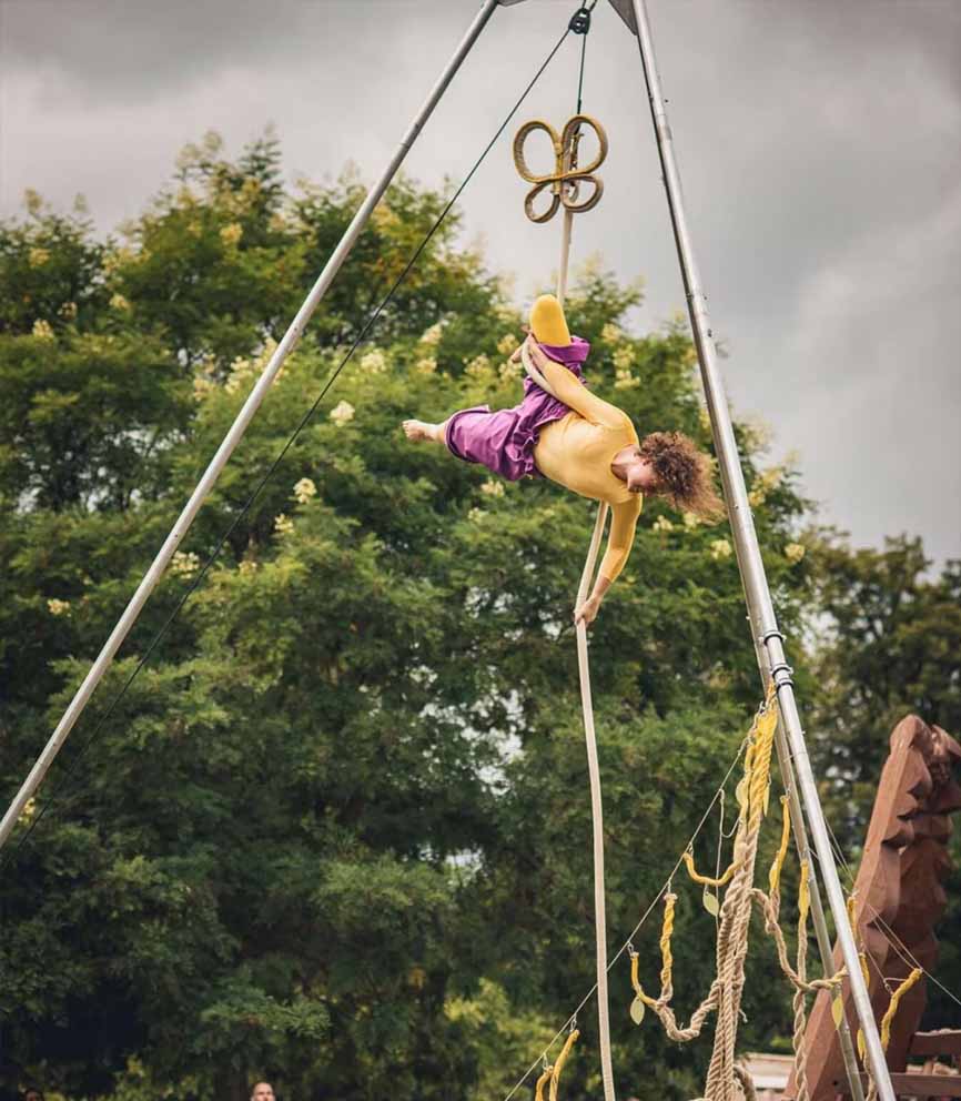 The microcosmos of insects is an accelerated analogy of the world of bipeds, i.e. us humans. Each chrysalis, caterpillar and butterfly plays its important role in shaping the overall balance. A new circus show, which is the gateway to a miniature world, where even an apple comes to life and where the art of flight is a beautiful reality. Fragility, freedom and the endless world of imagination. A performance for small children and big children, i.e. adults.