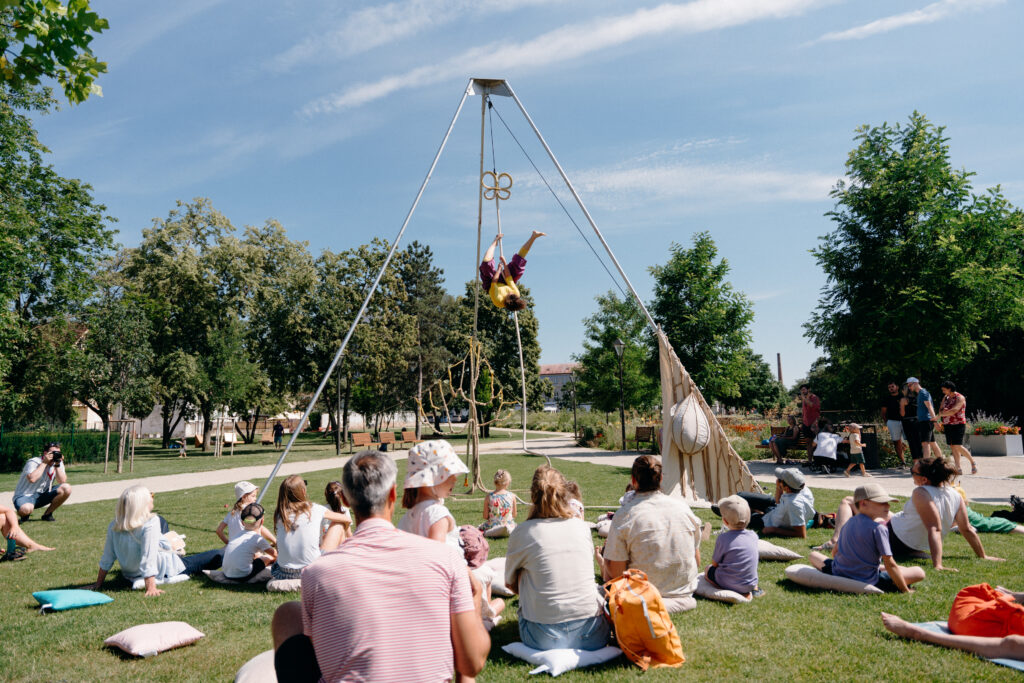 Romantický Ružový park v Trnave, ktorý len prednedávnom dostal nový šat, sa na chvíľu stal sídlom Motýlieho sveta akrobatky Leony Macurovej zo združenia Cirkus trochu inak. Leona objavila vzdušnú akrobaciu pred deviatimi rokmi a bola to láska na prvý pohľad. Svoje nadšenie pre tento netradičný pohyb s láskou odovzdáva deťom aj dospelým.