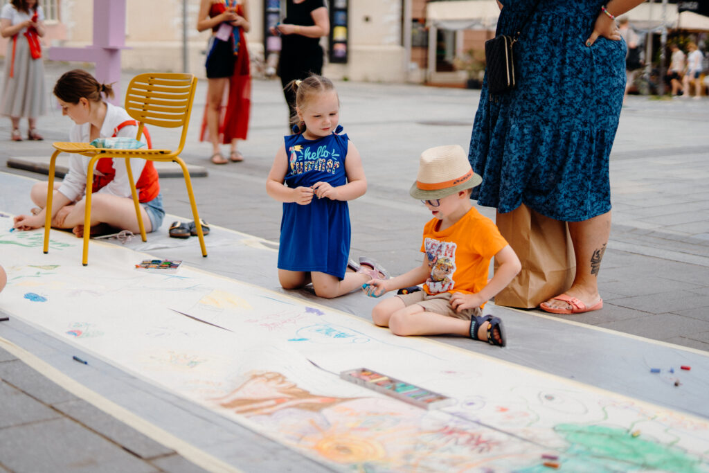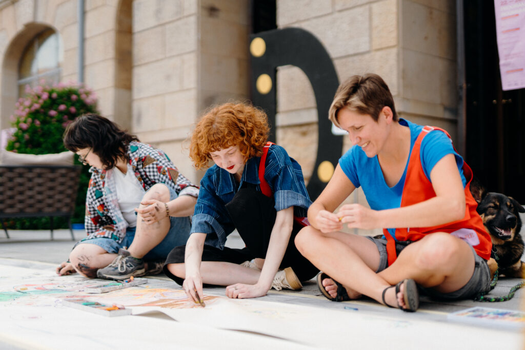 Na odreagovanie mohli festivaloví návštevníci popustiť uzdu fantázii pri komunitnom čarbaní. Išlo o projekt dvoch študentiek – Ivany a Anety zo SMÄD-u. Na to, aby si bol umelec, nemusíš mať umelecké vlohy. Môžeš nakresliť len tri bodky alebo môžeš zvečniť svoje abstraktné nálady. SMÄD nikoho nesúdi. Kto vie, možno prídeš na to, že je to pre teba ideálna forma na trávenie voľného času.