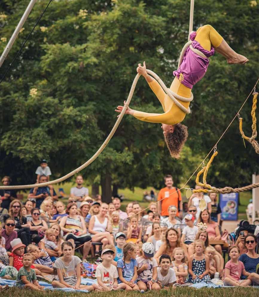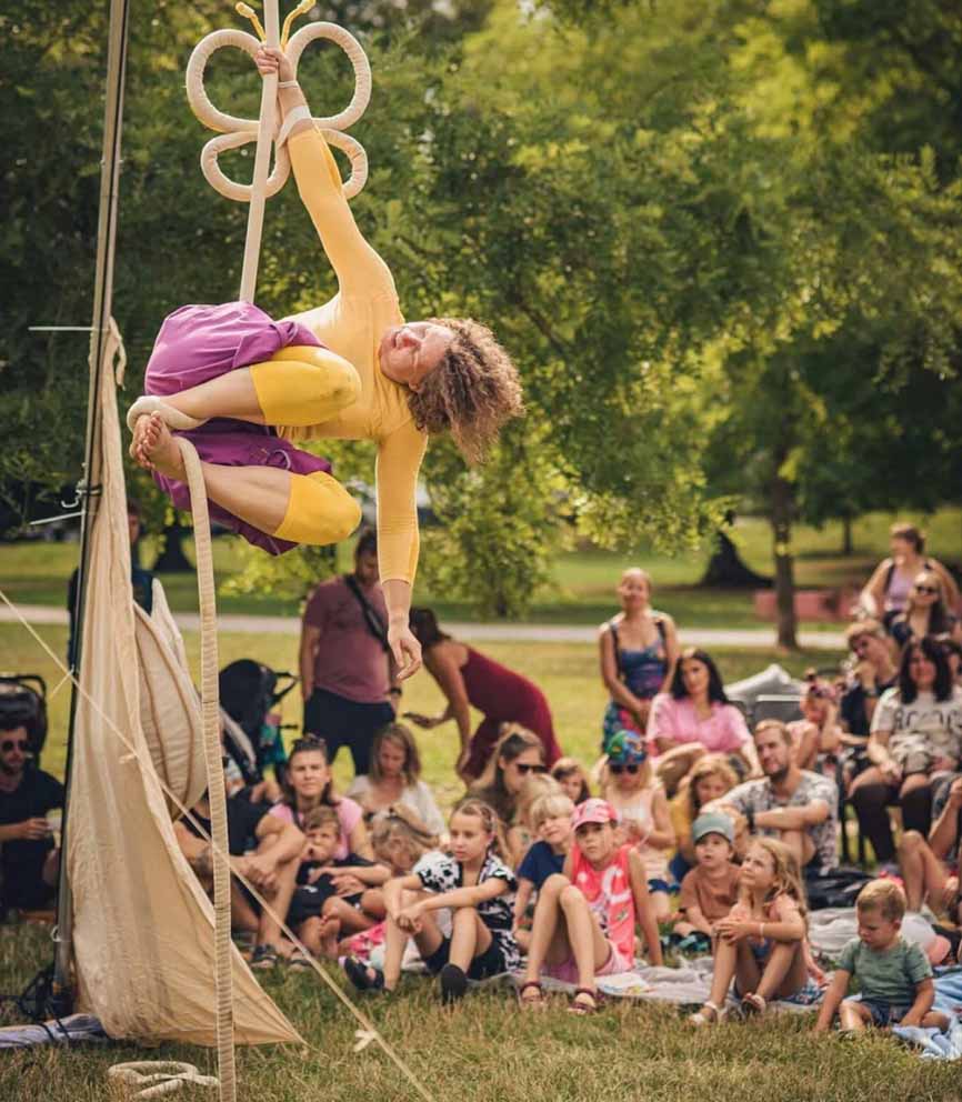 Mikrokozmos hmyzu je zrýchlenou analógiou sveta dvojnožcov, teda nás ľudí. Každá kukla, húsenica a motýľ zohrávajú svoju dôležitú úlohu pri formovaní celkovej rovnováhy. Novocirkusové predstavenie, ktoré je vstupnou bránou do miniatúrneho sveta, kde ožíva aj jablko a kde je umenie letu krásnou realitou. Krehkosť, sloboda a nekonečný svet predstavivosti. Predstavenie pre malé deti a veľké deti, teda dospelých.