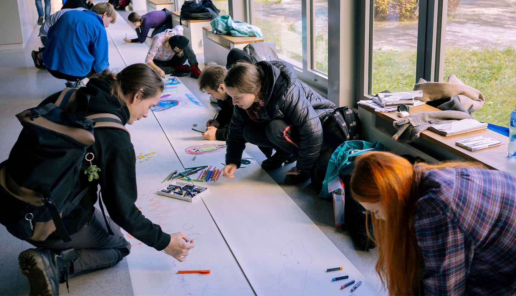 Komunitné čarbanie SMÄD je o spoločnom zaplnení papiera/látky našimi pocitmi a náladami. Netreba sa sústrediť na to, čo chceme vytvoriť, ale užívať si proces, ktorý vie prepájať komunity a prirodzene vedie k výsledku, v ktorom sa každý individuálne nájde. Jednotlivé rukopisy sa budú prelínať cez seba, čo spoločne vytvorí umelecké dielo. Môžeš použiť len jednu farbu alebo všetky. Môžeš nakresliť len tri bodky alebo svoje abstraktné nálady. SMÄD nikoho nesúdi a práve preto sa nemusíš báť, ak máš pocit, že nevieš kresliť. Práve naopak, budeš pre nás veľkou inšpiráciou. Možno prídeš na to, že to je pre teba ideálna forma odreagovania sa.